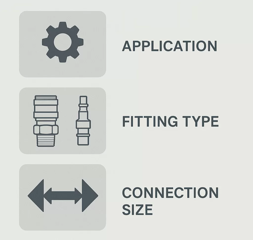 Choosing the correct quick connect fitting ensures safety, efficiency, and compatibility: